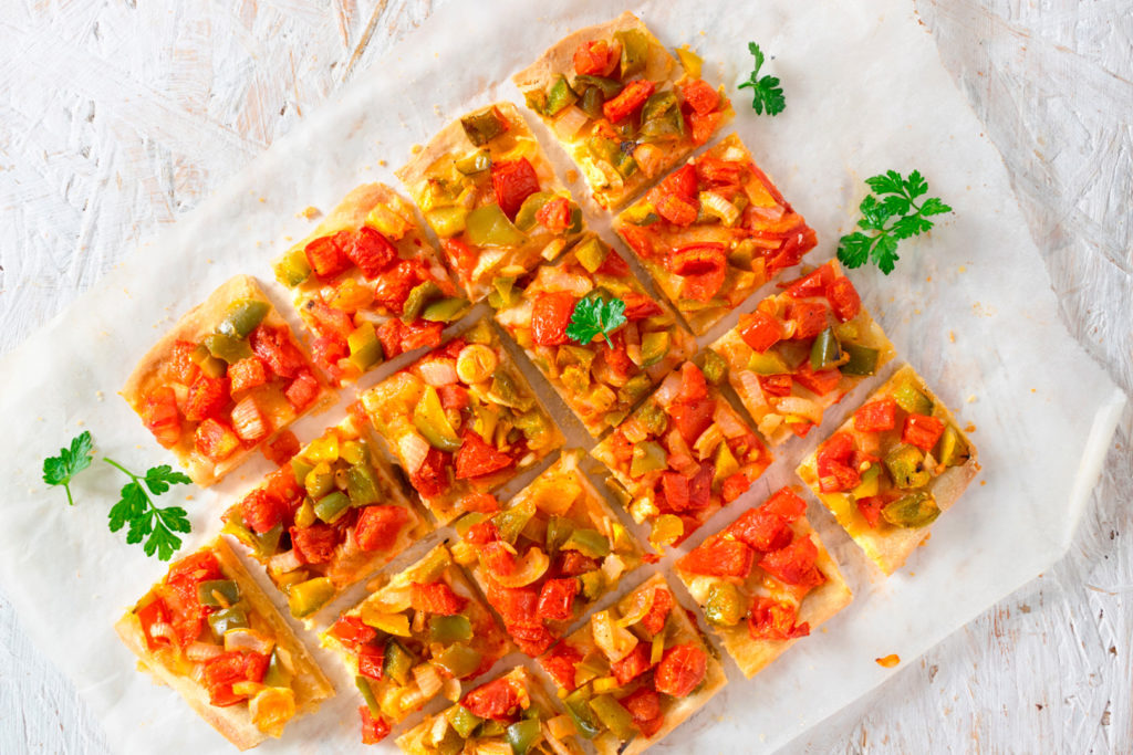 The Mallorcan version of pizza: a thin flatbread topped with tomato, pepper, and onion. Simple, light, and flavorful, it is one of the most popular recipes found in bakeries and at local festivals.